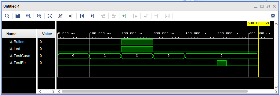 Time: 630 ns Iteration: 0 Process: /TestSimpleLed/stim_proc File: ...